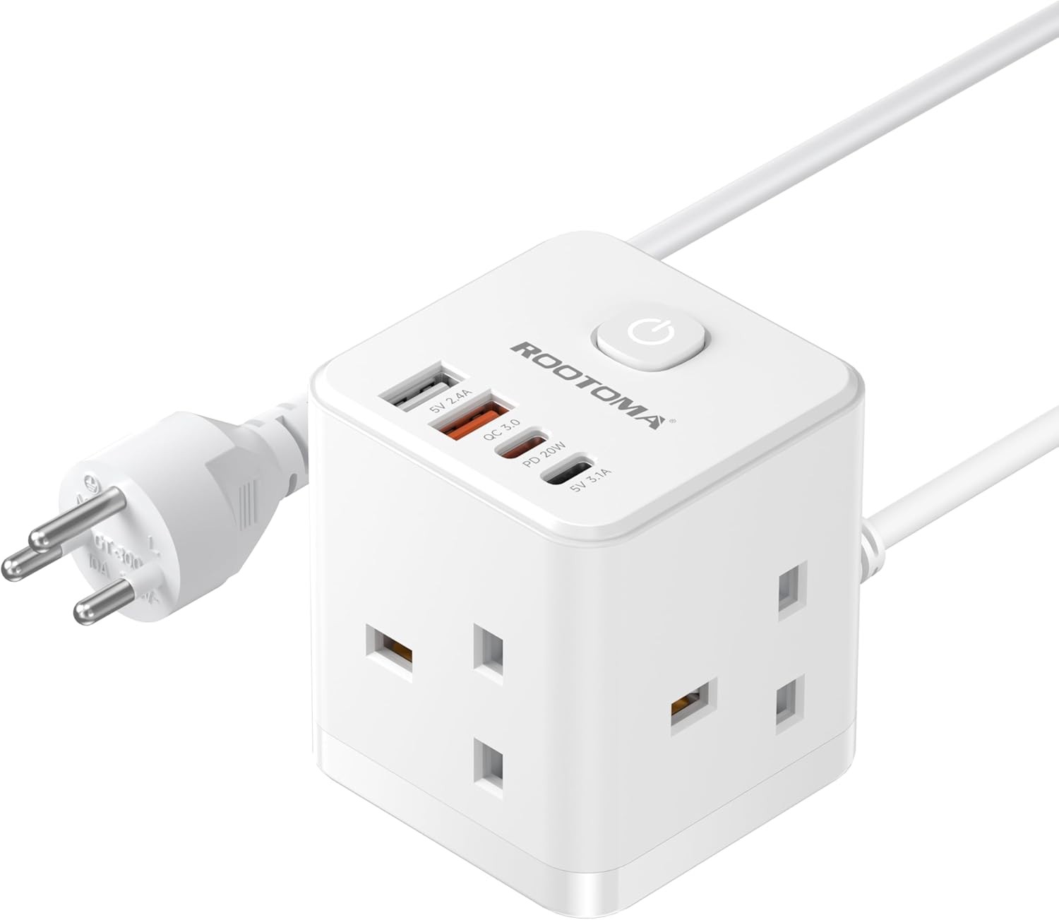 UK to Thailand Travel Adapter USB USBC 3 Sockets 2m Extension Lead Type F