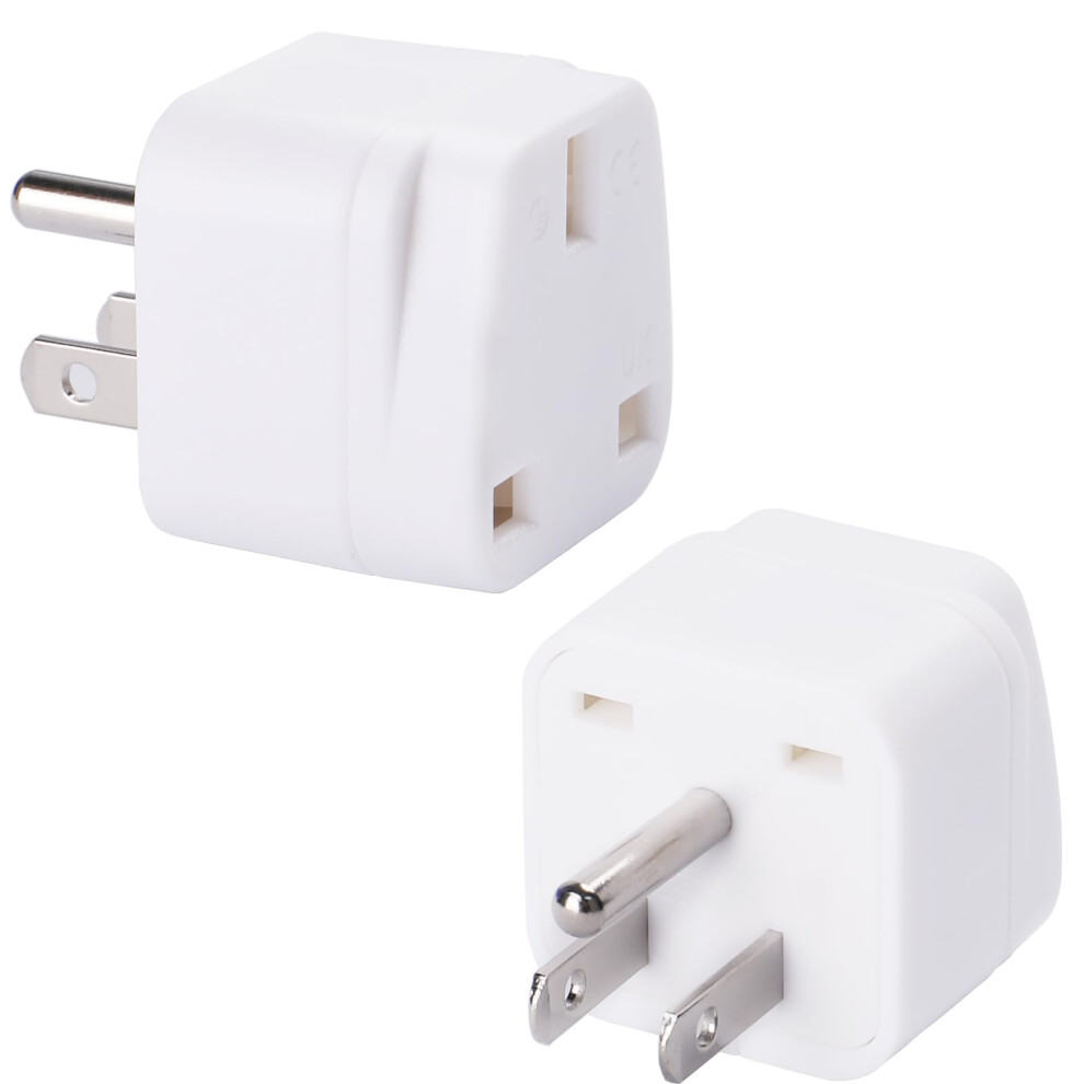 UK to US Plug Adaptor 3 pin to 2 Pin Flat Travel Adapter for USA, Canada, Mexico, Thailand, Refer to Description for country list US (2Packï¼