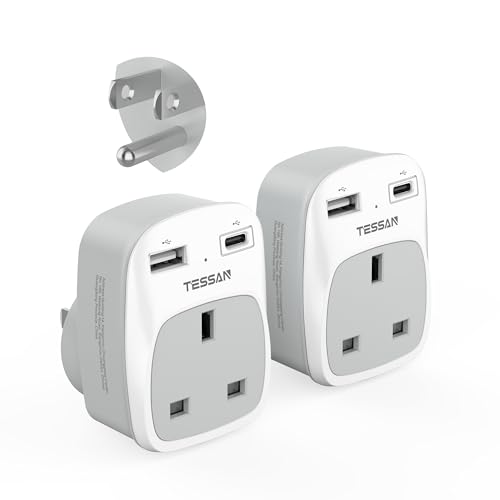 UK to US Plug Adaptor, TESSAN USA Travel Adapter with USB C and 2 USB A, 4 in 1 Travel Adaptor, American Plug Adapter from UK to Mexico, Canada, Thailand, Bahamas (Type B)