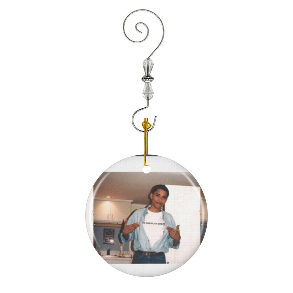 (The American Dream - Obama Print-6827) Christmas Ornaments Ceramic Charm with Hook Crystal Handmade Xmas Tree Decorations Keepsake Stocking Stuffer