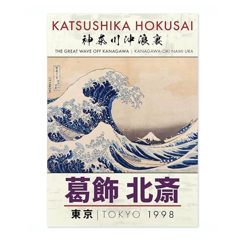 Animato The Great Wave Japanese Woodblock Print, Modern Poster Japan Wall Art Exhibition Ukiyo-E Home Decor, Archival Matte, A2 (Print Only) - 59.4x42cm