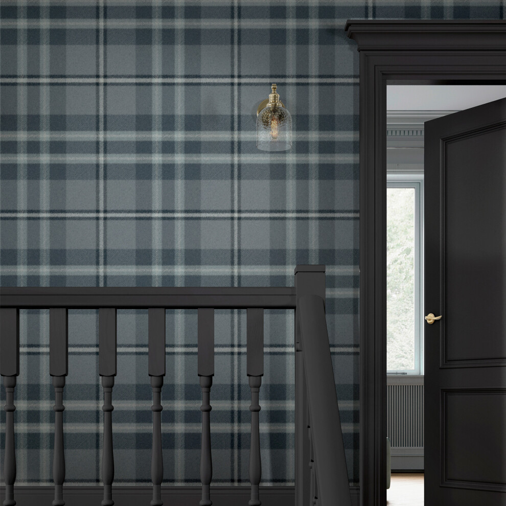 Superfresco Easy Eildon Weave Archival Blue Wallpaper | Paste the Wall | Blue Check | Eco-friendly