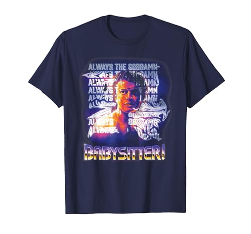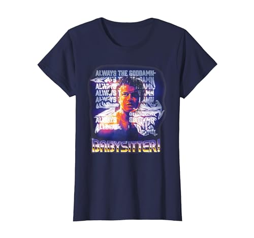 Stranger Things Steve Harrington Always The Babysitter T-Shirt, Women, Navy Blue, Large