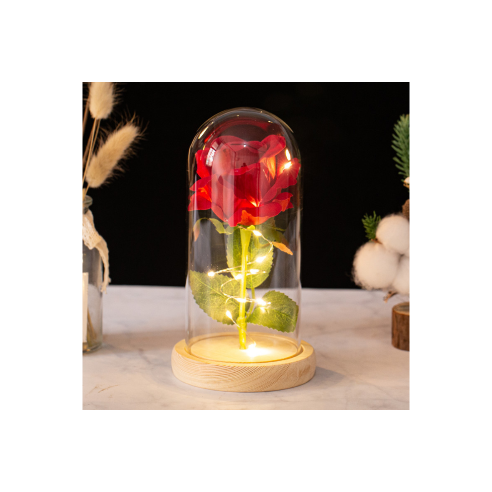 Red Silk Rose In Glass Dome, Beauty And The Beast Inspired Light-Up Rose, Warm White Led Strip, Symbol Of Love, Bends To Create Custom Shapes,