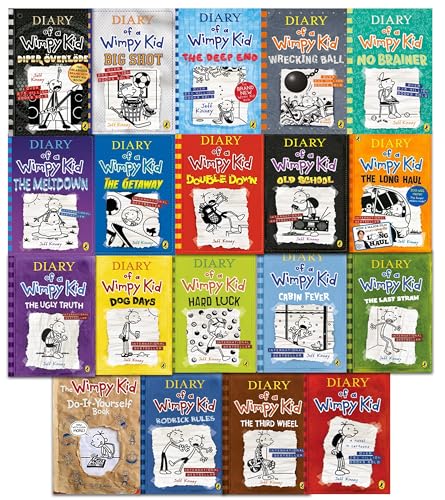 Diary of a Wimpy Kid Series 19 Books Collection Set by Jeff Kinney (No Brainer, Diper OEverloede, Big Shot, The Deep End, Wrecking Ball, The Meltdown, The Getaway, Do it Your Self & MORE!)