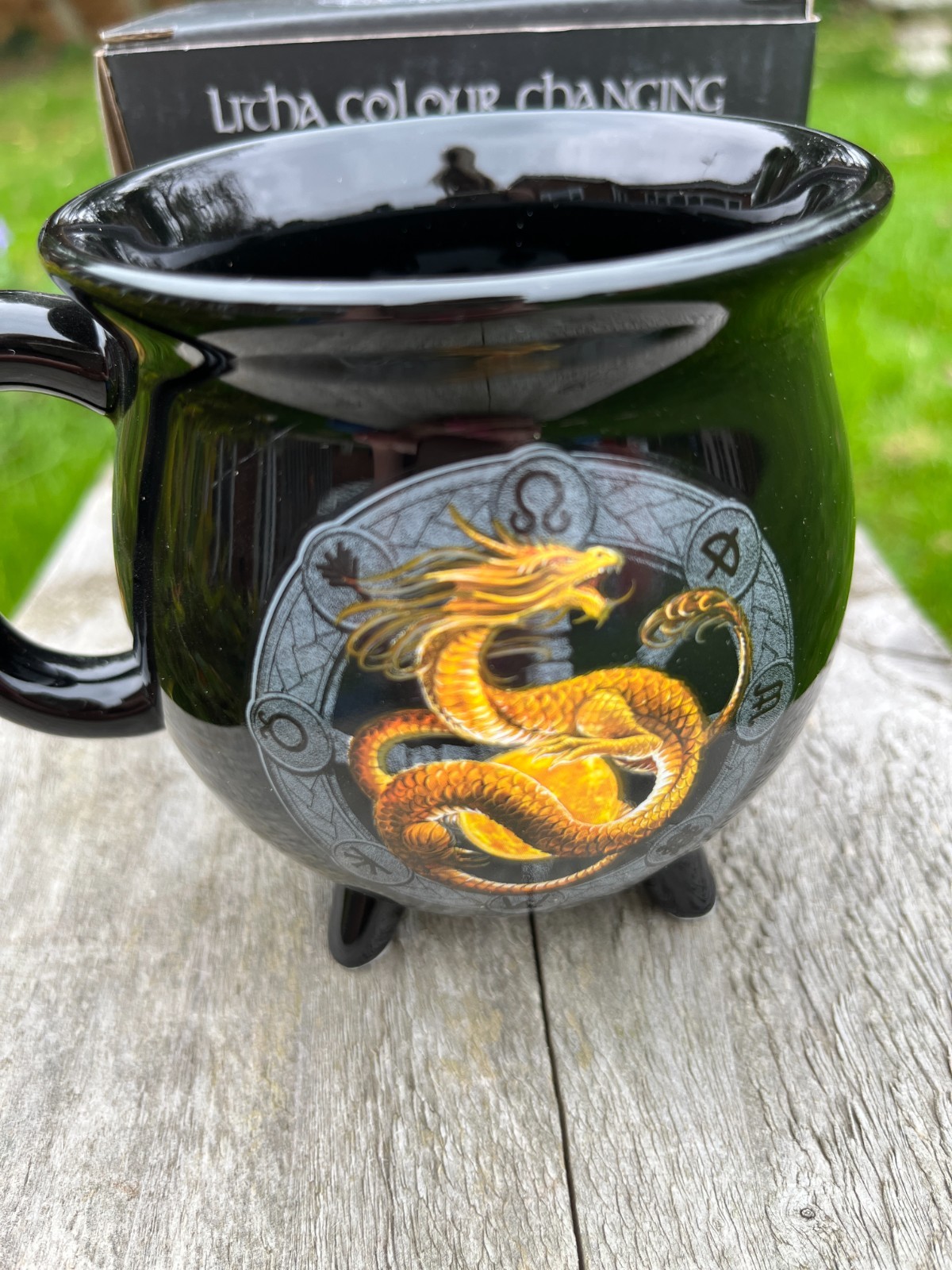 Litha Colour Changing Cauldron Mug by Anne Stokes Dragons of the Sabbats' boxed