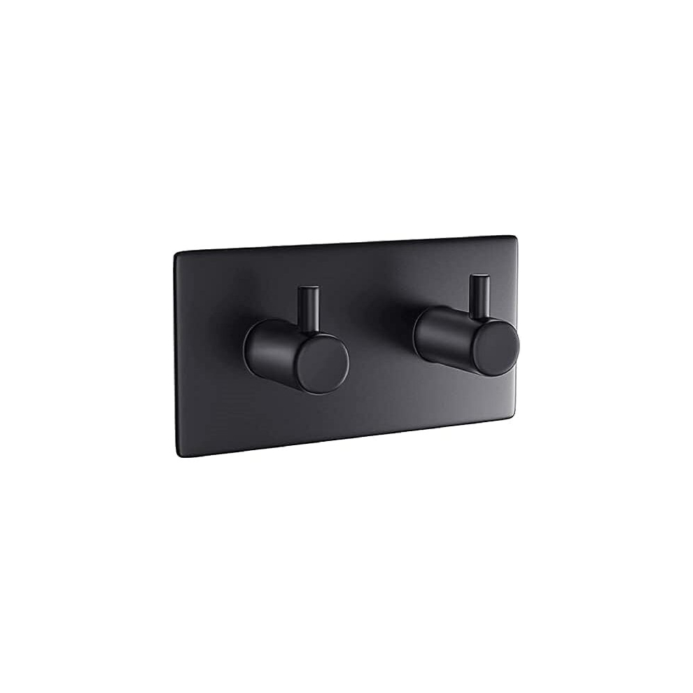 Double Black Towel Holder,Matt Finish,Coat,Robe,Self Adhesive,Sticky,Stainless Steel,Stick on Hooks,3M,Back of Door Hook,Wall,Hanging,Bathroom,Tea