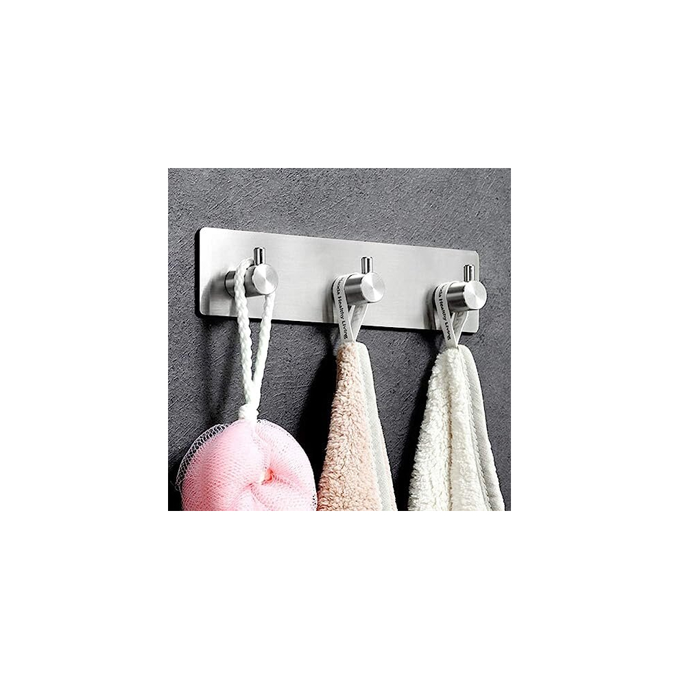 Triple Silver Towel Holder,Self Adhesive,Sticky Hook,Wall,Brushed Stainless Steel,Stick on Hooks,3M,Door Hooks,Wall Hooks for