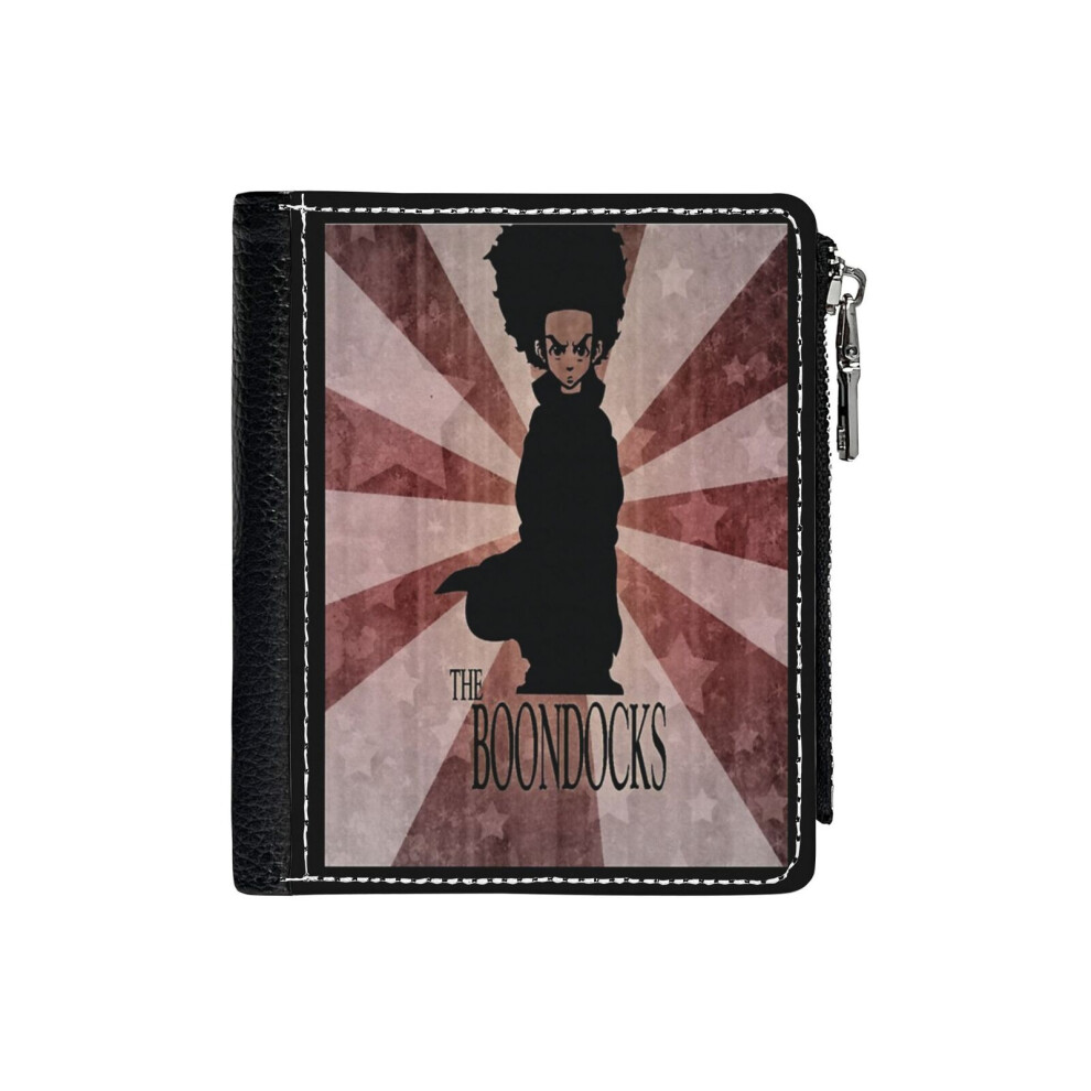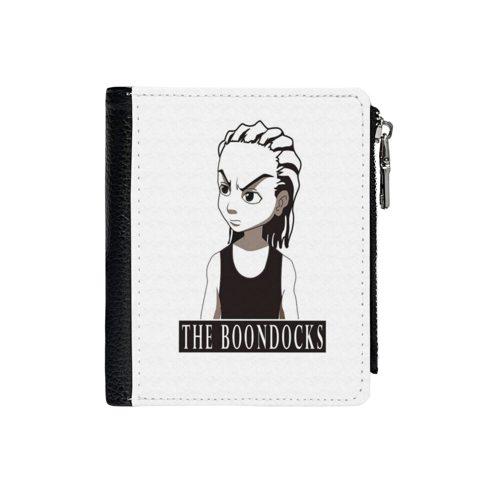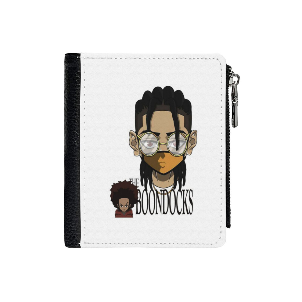 (The Boondocks Mix DR_3756) Men's Women PU Leather Wallets Compact Bifold with Zipper & Multiple Card Coins Slots Black Stylish Durable Graphic Design