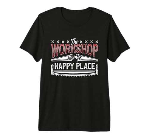 The Workshop is My Happy Place Loves Woodworking Carpenter Premium T-Shirt