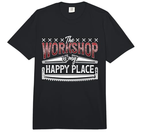The Workshop is My Happy Place Loves Woodworking Carpenter Comfort Colors Adult Heavyweight T-Shirt