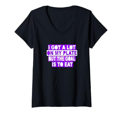 Women's Purple Color The Goal is to Eat Purple Graphic V-Neck T-Shirt