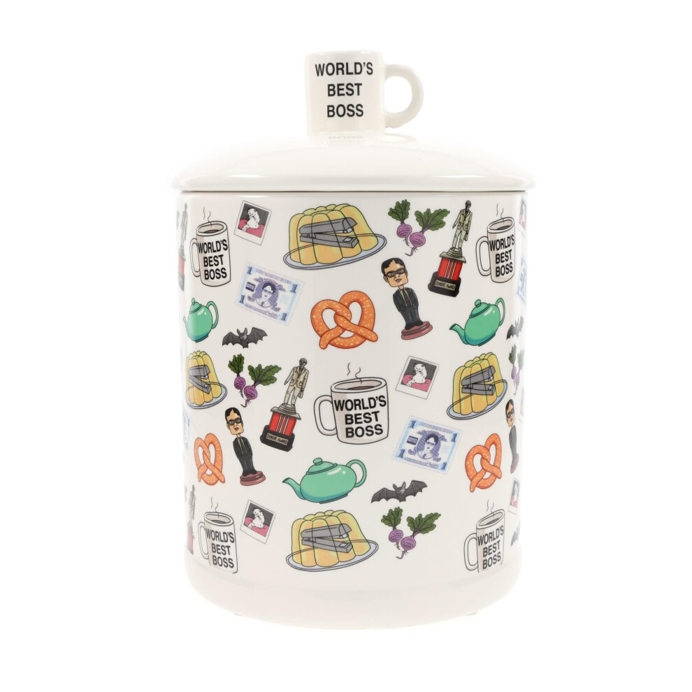 Silver Buffalo The Office Worlds Best Boss Multi Pattern Large canister ceramic cookie Jar