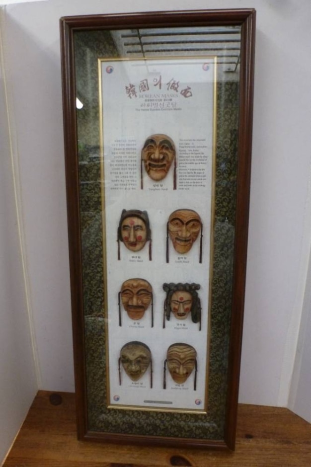 Beautiful Framed Korean Masks - The Hahoe Byeolsin Exorcism Masks 22 X 9"