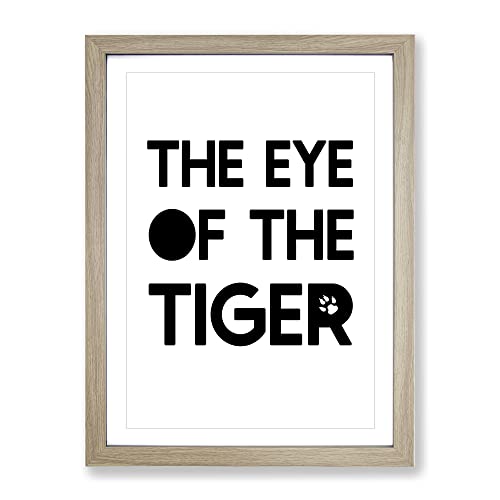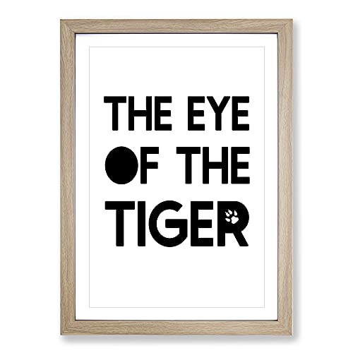 Eye Of The Tiger Typography Quote Framed Wall Art Print, Ready to Hang Picture for Living Room Bedroom Home Office Décor, Oak A4 (34 x 25 cm)