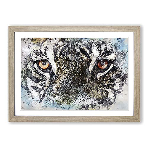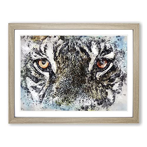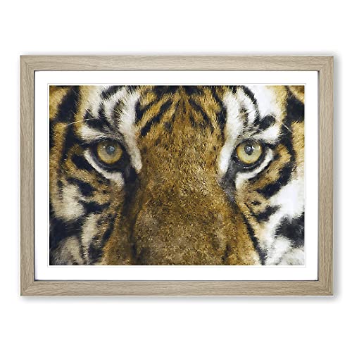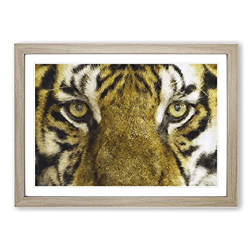 Eye Of The Tiger Painting Modern Art Framed Wall Art Print, Ready to Hang Picture for Living Room Bedroom Home Office Décor, Oak A4 (34 x 25 cm)