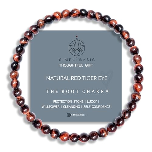 SIMPLÍ BASIC Natural Red Tiger Eye Healing Gemstone Bracelet 4mm Bead | Womens & Mens | Purification of The Heart | Evil Eye Beads | Removes Negative Energy | Inc Gift Box