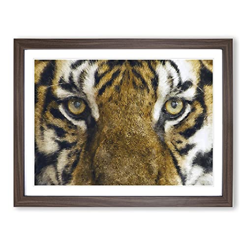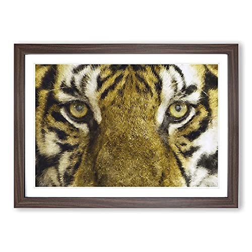 Eye Of The Tiger Painting Modern Art Framed Wall Art Print, Ready to Hang Picture for Living Room Bedroom Home Office Décor, Walnut A4 (34 x 25 cm)