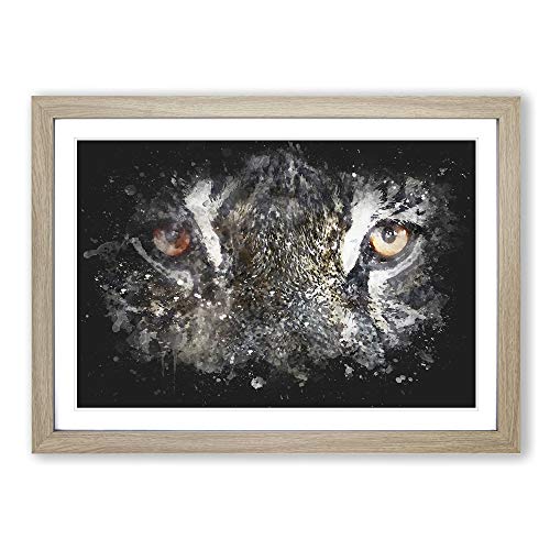 Big Box Art Eye of The Tiger Paint Splash Framed Wall Art Picture Print Ready to Hang, Oak A2 (62 x 45 cm)