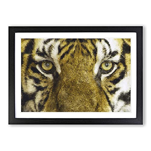 Eye Of The Tiger Painting Modern Art Framed Wall Art Print, Ready to Hang Picture for Living Room Bedroom Home Office Décor, Black A4 (34 x 25 cm)