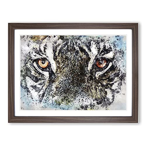 Eye Of The Tiger Painting Modern Art Framed Wall Art Print, Ready to Hang Picture for Living Room Bedroom Home Office Décor, Walnut A2 (64 x 46 cm)