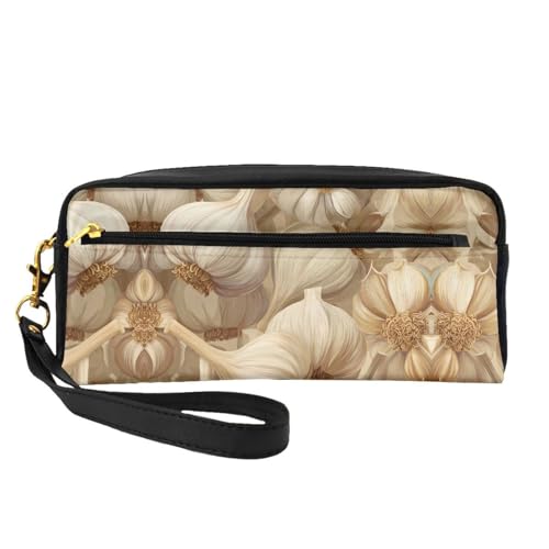 ZQYTGFDC The beauty of lipstick marks Leather portable makeup storage bag Aesthetic Pencil Bag for Women, Makeup Pouch, Garlic Flat Lay, One Size