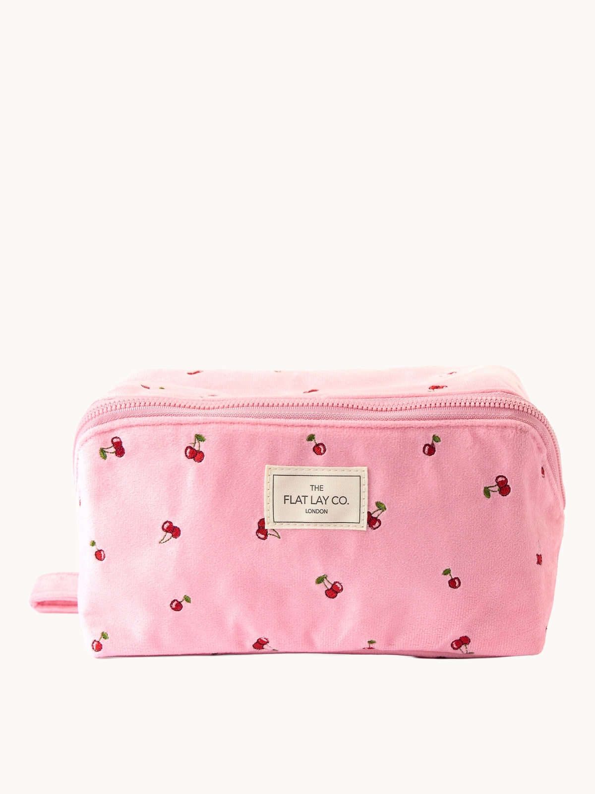 The Flat Lay Co. Flat Lay Makeup Box Bag - Ditsy Cherries Pink Embroidered Velvet