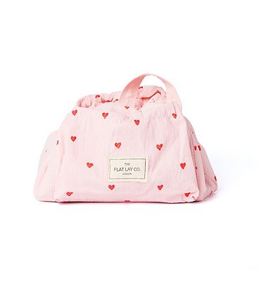 The Flat Lay Co Parachute Drawstring Flat Lay Makeup Bag Sweet Pink Hearts