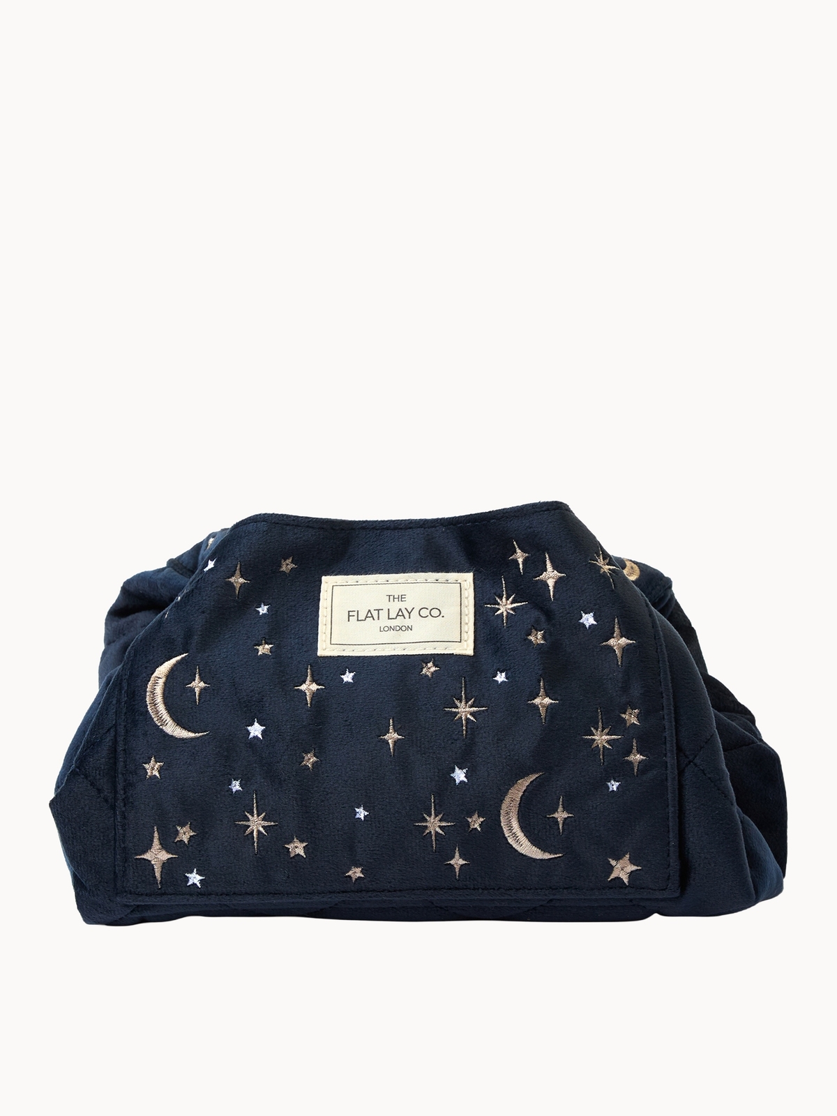 The Flat Lay Co. Drawstring Flat Lay Makeup Bag - Celestial Blue Embroidered Velvet