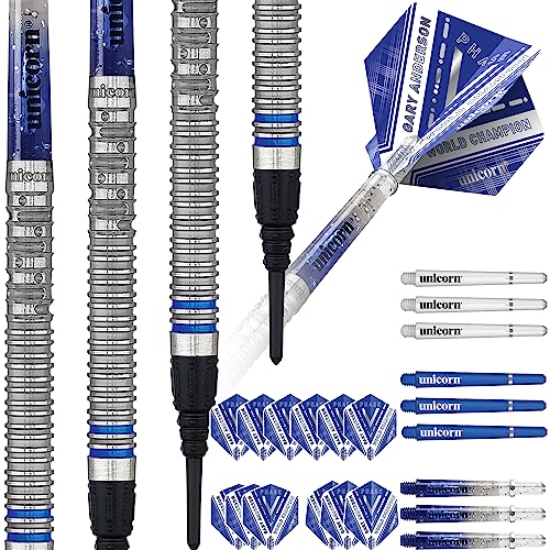 Unicorn Soft Tip Darts Set | Gary 'The Flying Scotsman' Anderson Phase 5 World Champion | 70% Natural Tungsten Barrels with Blue Accents | 18 g