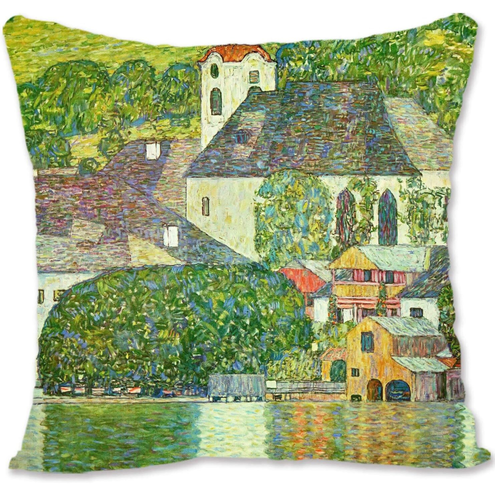 Decorative Throw Pillow Case Cover Landscape Art - Klimt - Forester's Lodge In Weissenbach II Am Attersee GK-Church in Unterach on the Attersee Gk