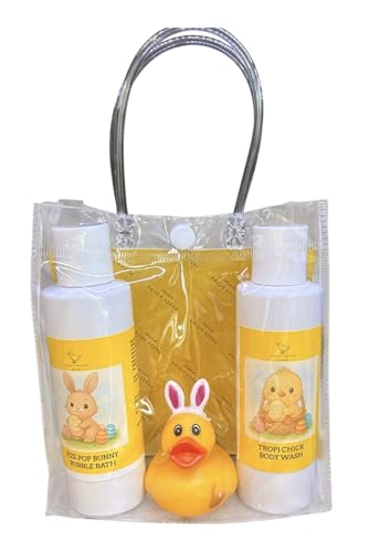 Fuzzy Ducks Aromas Easter Bath Set, Fizz Pop Bunny Bubble Bath, Tropi Chick Body Wash, Rubber Duck Toy, Gift Bag