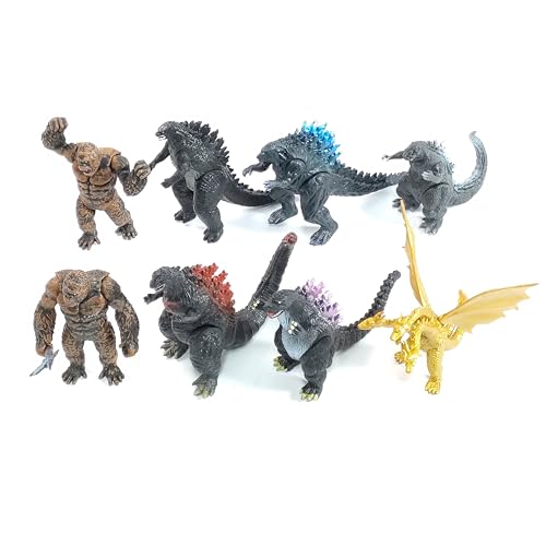 Godzill Toys The King of Monster Toys Movable Joint Action Figures, Mini Dinosaur Playsets Kids Birthday Gifts Cake Toppers Pack (Space King&gigan)