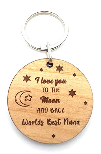 Worlds Best Nana I Love You to The Moon and Back Wooden Keyring Gifts for Birthday Christmas Mothers Day Novelty Keepsake