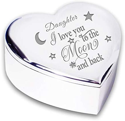 DAUGHTER I LOVE YOU TO THE MOON & BACK Silver finish TRINKET BOX Gift Presents