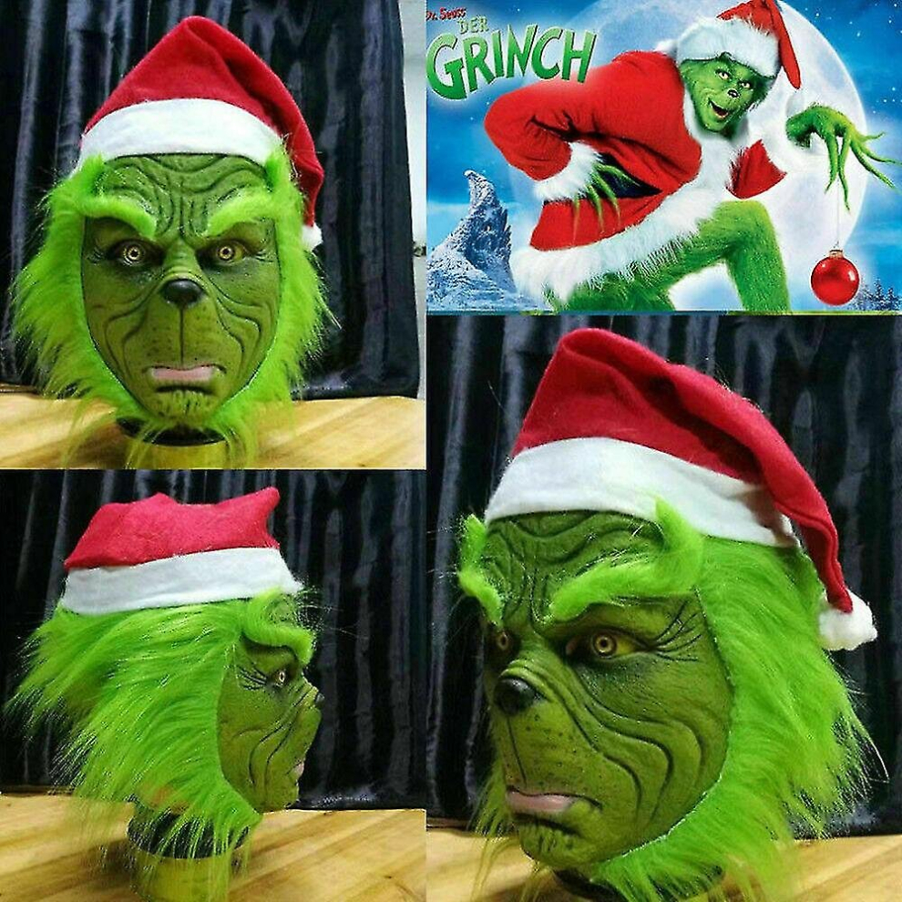 Grinch Latex Mask How the Grinch Stole Horror Helmet Christmas Cosplay One Size for Adults