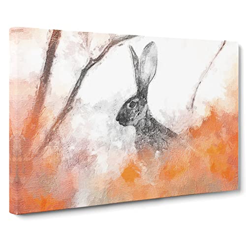The Alert Hare In Orange Modern Art Canvas Wall Art Print Ready to Hang, Framed Picture for Living Room Bedroom Home Office Décor, 30x20 Inch (76x50 cm)