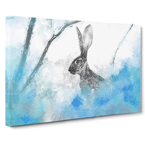 The Alert Hare In Blue Modern Art Canvas Wall Art Print Ready to Hang, Framed Picture for Living Room Bedroom Home Office Décor, 24x16 Inch (60x40 cm)