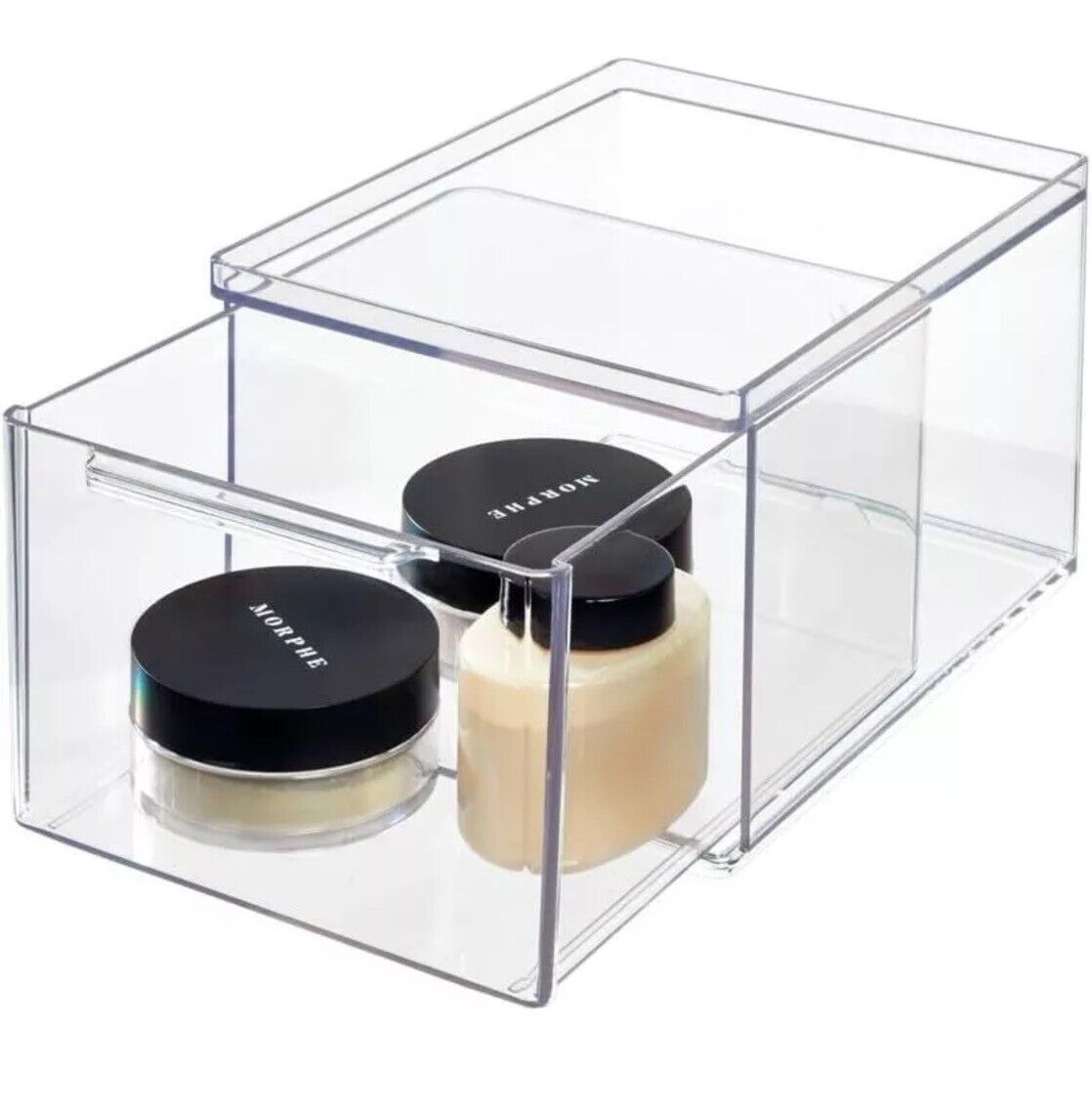The Home Edit by iDesign Clear Recycled Plastic Organiser Bin with Pull Out Drawer (Pack of 2)