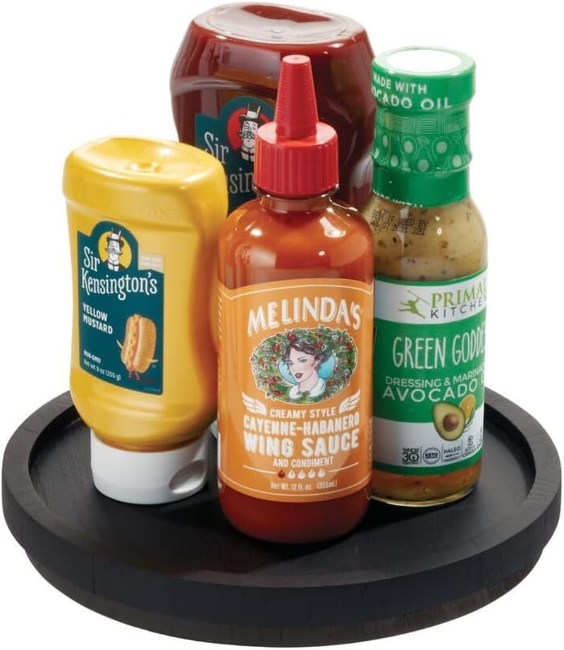 The Home Edit by iDesign 22,9cm Lazy Susan Turntable with Raised Edge, Black Paulownia Wood