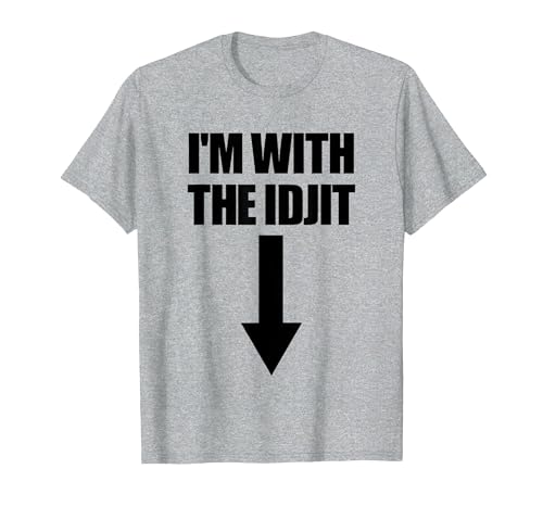 I'm with The Idjit Arrow Down Funny Idiot Slang Idjit T-Shirt, Men, Heather Grey, Large