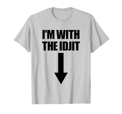 I'm with The Idjit Arrow Down Funny Idiot Slang Idjit T-Shirt, Men, Silver Grey, Large