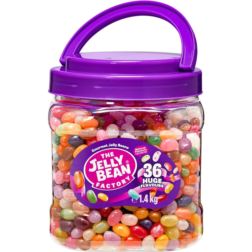 The Jelly Bean Factory Huge Flavours Jar 1.4KG - Jelly Beans - Sweets - Enjoy the 36 Natural Flavours - Gelatine free - Fruit flavours - Chewy
