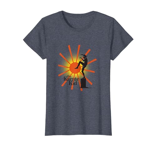 The Karate Kid Daniel Silhouette with Sun Vintage Movie T-Shirt, Women, Heather Blue, Large