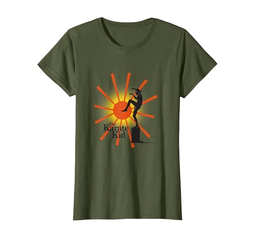 The Karate Kid Daniel Silhouette with Sun Vintage Movie T-Shirt, Women, Olive Green, XX-Large