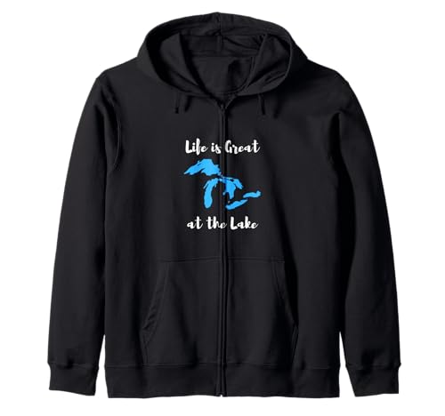 Life is Great at the Lake Great Lakes Funny Design Zip Hoodie