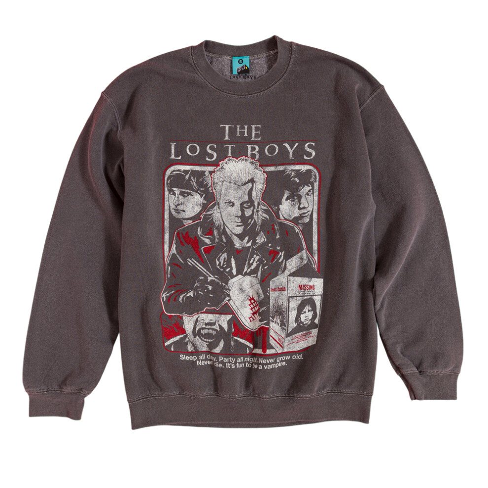 (M, Charcoal) The Lost Boys Unisex Adult Sleep All Day Vintage Wash Sweatshirt