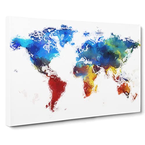 Abstract Map Of The World Modern Art Canvas Wall Art Print Ready to Hang, Framed Picture for Living Room Bedroom Home Office Décor, 20x14 Inch (50x35 cm)