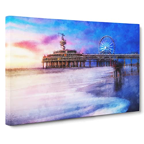 Beach In The Netherlands Painting Modern Art Canvas Wall Art Print Ready to Hang, Framed Picture for Living Room Bedroom Home Office Décor, 30x20 Inch (76x50 cm)