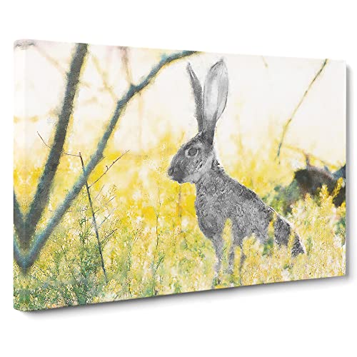 Alert Hare In The Meadow Painting Modern Art Canvas Wall Art Print Ready to Hang, Framed Picture for Living Room Bedroom Home Office Décor, 30x20 Inch (76x50 cm)
